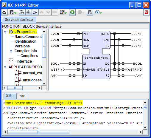 - Create a new service interface FB type in the editor by: